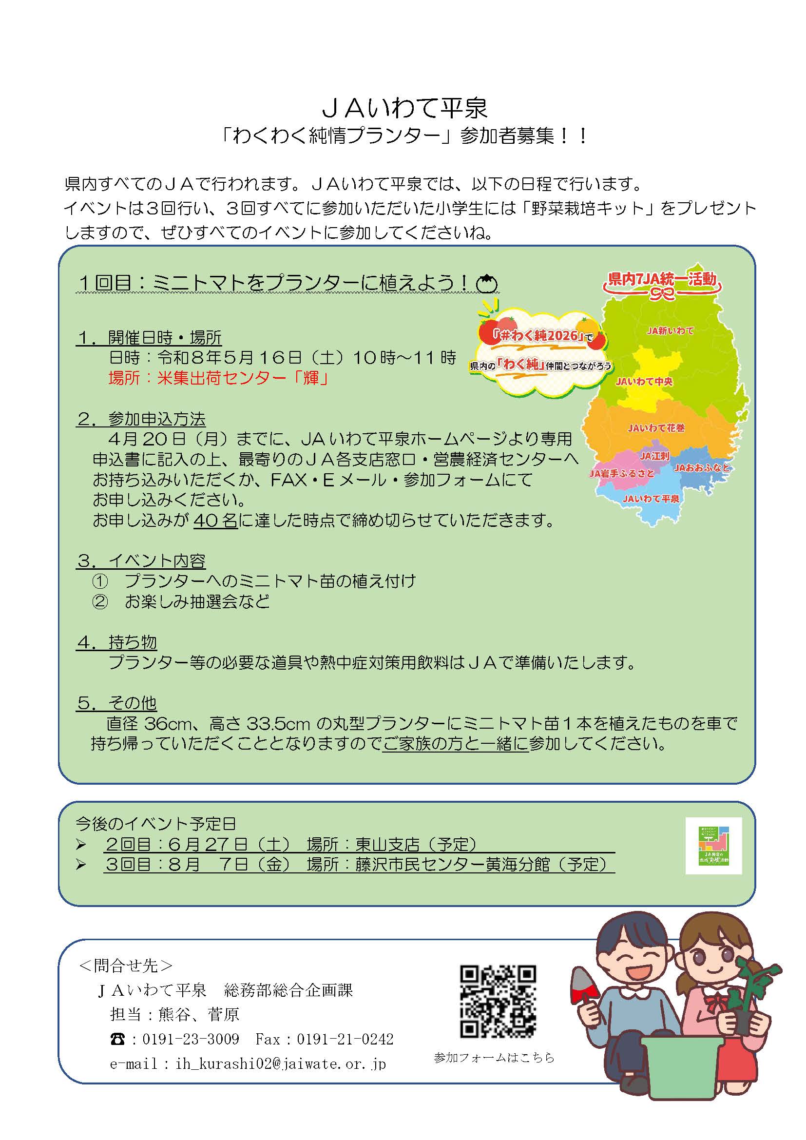 JAいわてグループPresents わくわく純情プランターへの参加者を募集しております!