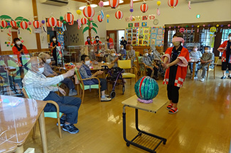 金魚すくいや的当てなどの縁日や、職員によるスイカ割り、花笠音頭を全員で踊り、お祭り気分を満喫しました。